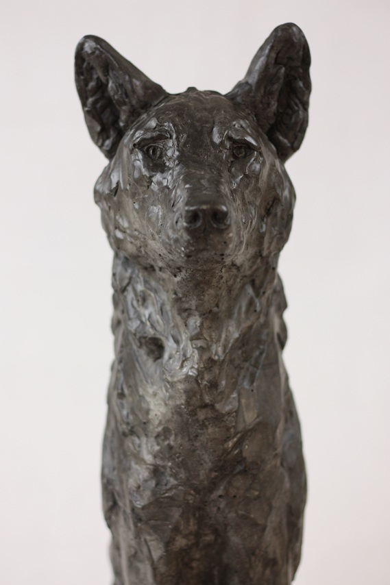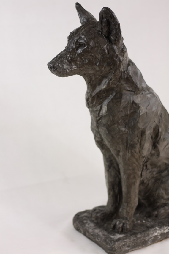 La sculpture est teintée dans la masse par des oxydes de fer ou des pigments naturels.