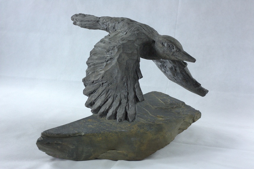 La sculpture est teintée dans la masse par des oxydes de fer ou des pigments naturels.